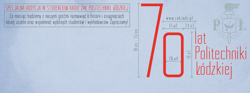 Zapraszamy do słuchania co miesiąc specjalnej audycji "70 lat Politechniki Łódzkiej". Od 20 stycznia między godziną 18.00 a 20.00 na antenie Studenckiego Radia ŻAK Politechniki Łódzkiej!