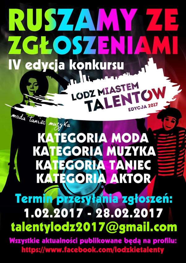 Wszyscy, którzy chcą wziąć udział w konkursie powinni wysłać swoje zgłoszenie do 28 lutego na adres mailowy talentylodz2017@gmail.com. Swoje zgłoszenia możecie wysyłać w formacie mp3. Pokażcie jak gracie, tańczycie, śpiewacie, projektujecie. Zaskoczcie jury! Lista zakwalifikowanych osób znajdzie się na Facebooku.