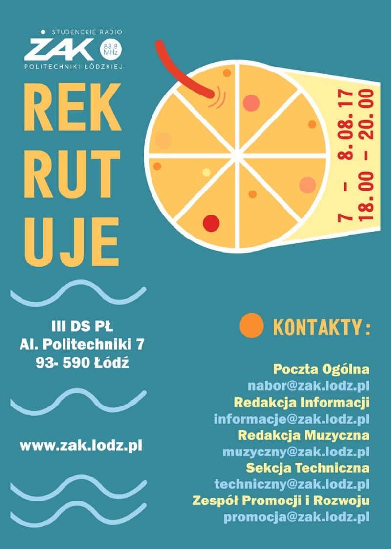 Czekamy na Was w Studenckim Radiu ŻAK Politechniki Łódzkiej, przy al. Politechniki 7 (III Dom Studenta PŁ). Gorąco zapraszamy!