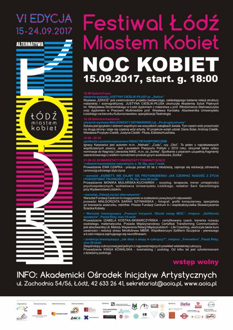 W dniach 15–24 września Akademicki Ośrodek Inicjatyw Artystycznych organizuje szóstą już edycję Festiwalu Łódź Miastem Kobiet.