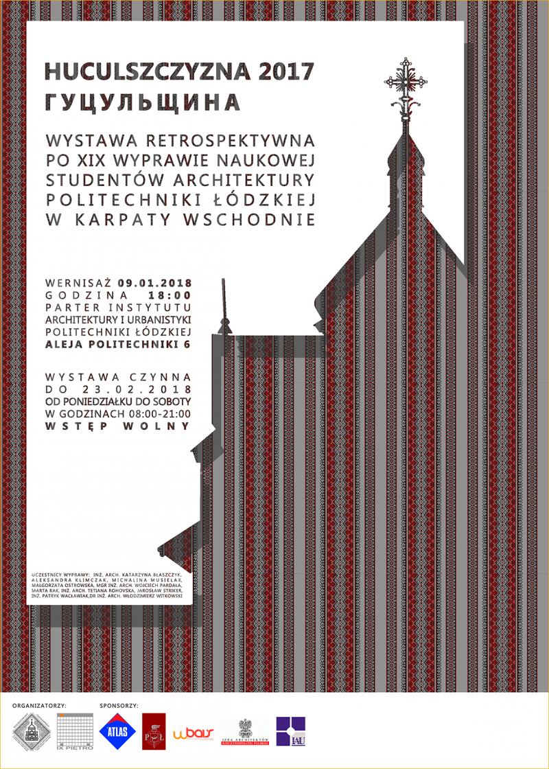 Serdecznie zapraszamy wszystkich zainteresowanych do obejrzenia Wystawy Retrospektywnej po XIX Wyprawie Naukowej Studentów Architektury PŁ w Karpaty Wschodnie „HUCULSZCZYZNA 2017”.
