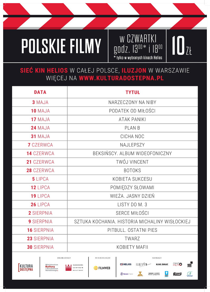 Widzowie kin ogólnopolskiej sieci Helios poznają najnowsze, najczęściej nagradzane i najbardziej cenione przez krytyków polskie filmy w ramach kolejnej, dziesiątej już edycji cyklu Kultura Dostępna.
